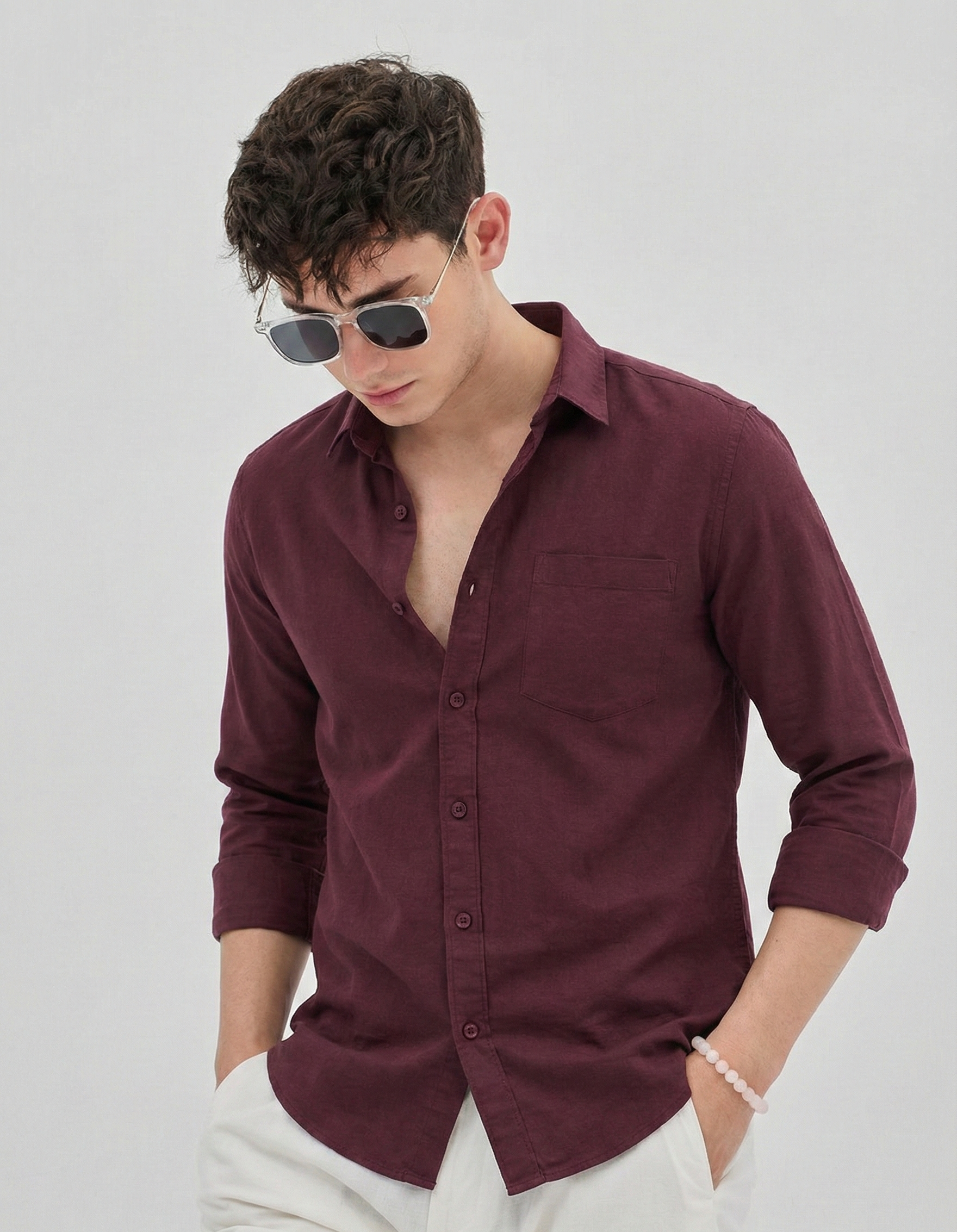 Elevate your everyday style with this deep burgundy shirt, designed for effortless sophistication.